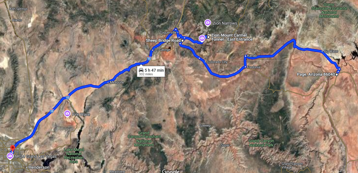 On reprend la route en direction de Las Vegas. La première fois, c'était juste une étape. Là on va y rester quatre jours.