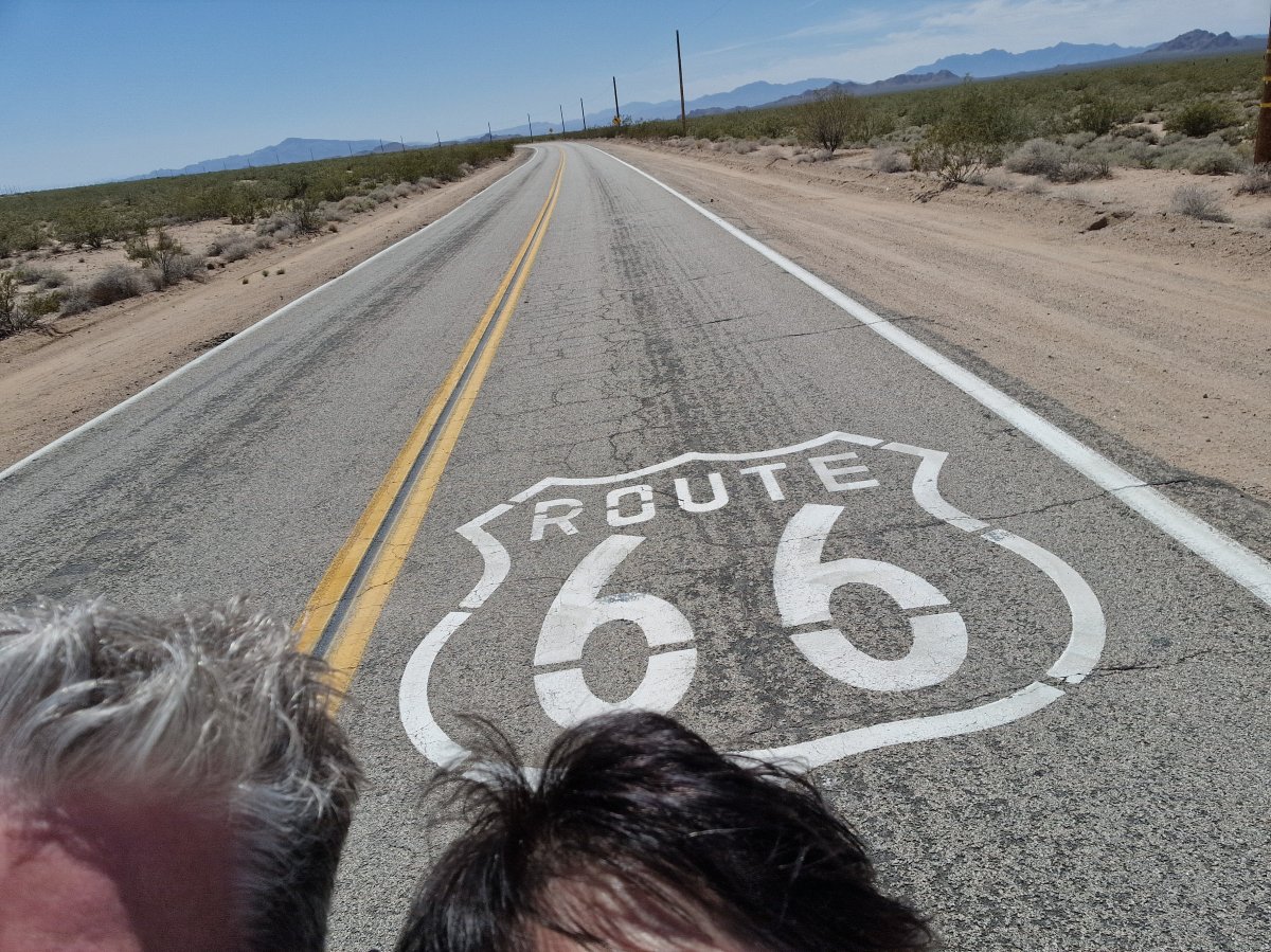 On quitte Las Vegas, direction Los Angeles. On essaie de passer par la Route 66, mais plusieurs tronçons sont fermés ou interdits. On continue de s'exercer pour les selfies, mais c'est pas encore au point.